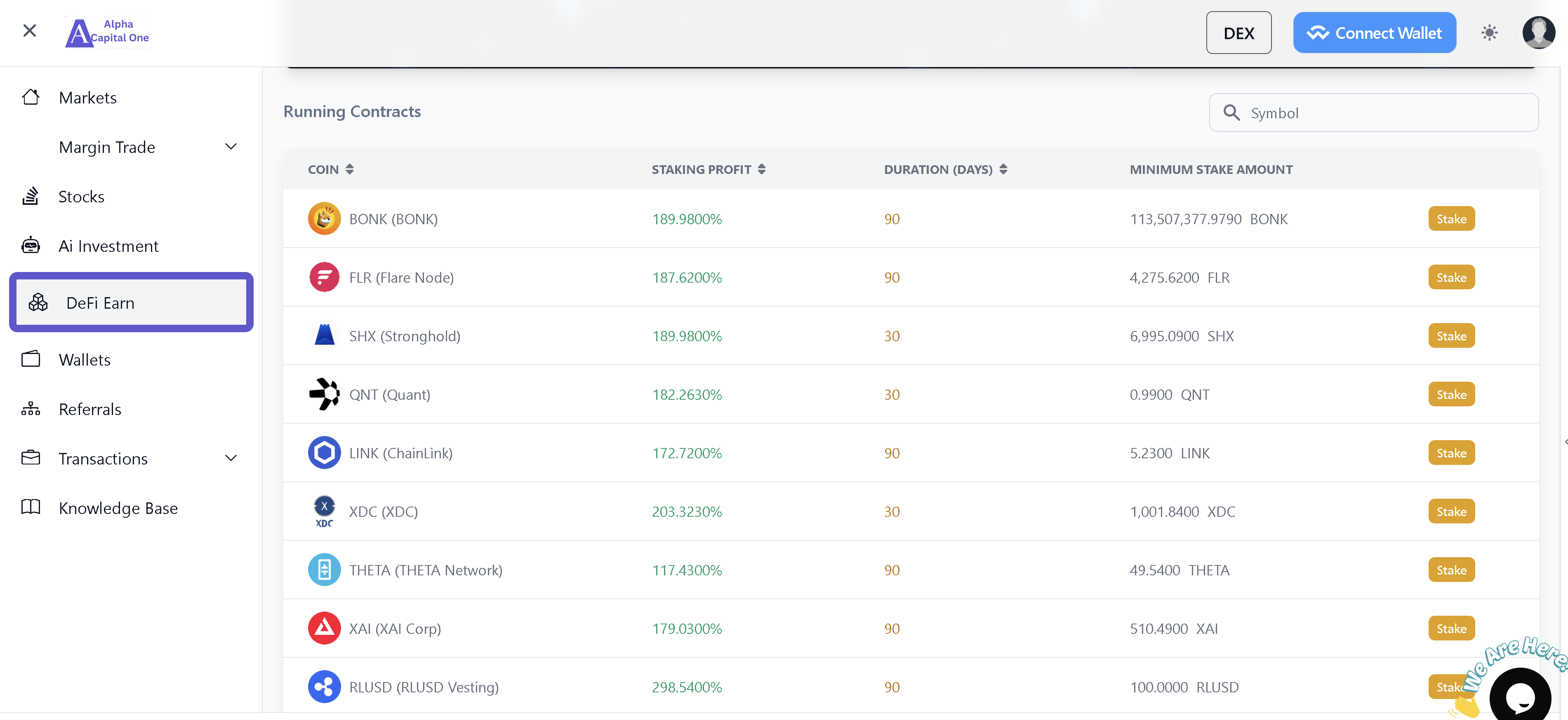 Register a AlphaCapitalOne account and connect it to your personal wallet { Coinbase, Kraken or Ledger } through an API. We care about your safety. All user data is encrypted and we never have permission to sensitive actions like withdrawal.